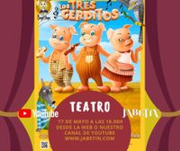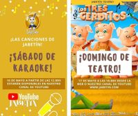 Este fin de semana os proponemos DOS canciones en formato karaoke de la función de "LOS TRES CERDITOS" de Jabetin, que emitiremos en nuestro canal el Domingo 17 de Mayo a las 18:00h. En los enlaces siguientes podéis disfrutar de forma permanente de los videos de estas dos canciones, en formato karaoke, para que podáis cantarlas y disfrutar con nosotros. Canción de "Yo soy el lobo vividor": https://youtu.be/TfnnPyZyv10 Canción de "Jugando al escondite": https://youtu.be/KsHjluaBGCk Seguiremos trabajando por poner nuestro granito de arena en esta cuarentena. Síguenos en las redes para estar informado de todo lo que programamos para disfrutar del teatro en familia con jabetin. |